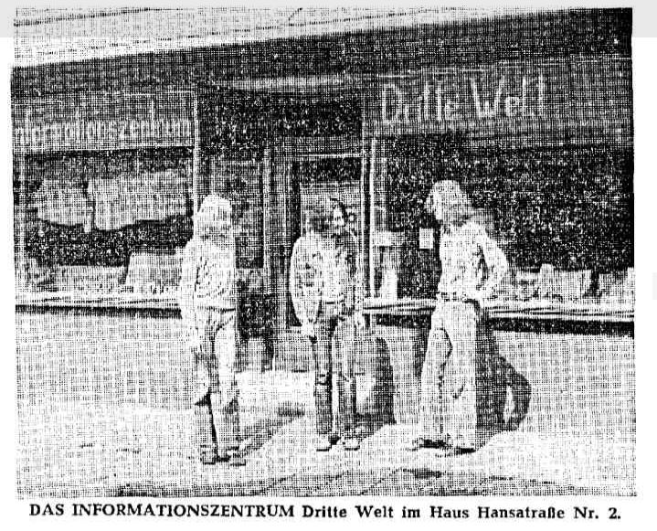 Nun entstanden die ersten Läden für fair gehandelte Waren, sie bekamen den Namen „Dritte Welt Laden“. In Rheine fand sich damals eine Gruppe junger Leute, die in der Hansastraße ein „Informationszentrum 3. Welt“ mit einem der ersten Weltläden Deutschlands einrichteten.